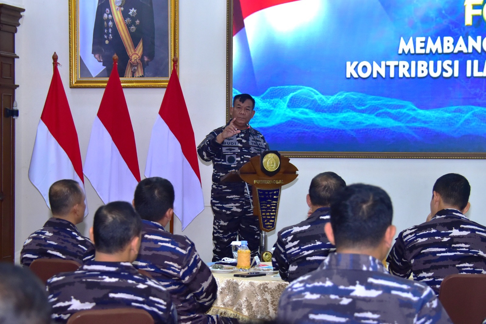 Komandan Pushidrosal, Laksamana Madya TNI Dr. Budi Purwanto, S.T., M.M., dalam sambutannya menegaskan pentingnya membangun SDM hidrografi yang tangguh, adaptif, dan berwawasan multidisiplin. Sumber daya manusia hidrografi merupakan kunci utama kekuatan maritim modern. Ilmu geografi memberikan dasar ilmiah untuk memahami ruang laut, arus, pasang surut, dan dinamika pantai sebagai bagian dari pertahanan maritim yang berbasis pengetahuan.